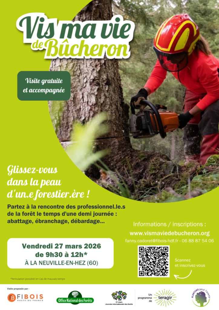 Fibois Hauts-de-France et l’ONF (Office National des Forêts) vous donnent rendez-vous le vendredi 27 mars de 9h30 à 12h à la Forêt Domaniale de Hez-Froidmont à La Neuville-en-Hez pour découvrir la gestion forestière et les travaux de la forêt aux côtés d’un ouvrier forestier.